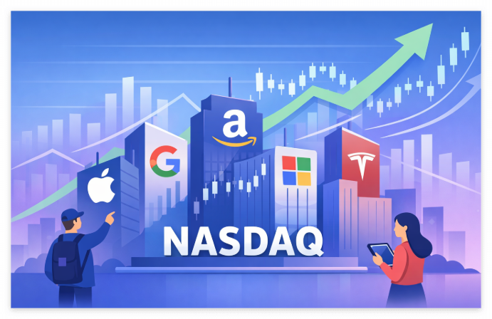 많이들 나스닥을 “기술주 시장”으로 생각하지만, ETF를 고를 때는 더 정확히 봐야 한다. 실제로 많은 사람이 말하는 “나스닥 ETF”는 ‘나스닥 100(Nasdaq-100)’을 추종하는 ETF를 의미한다. 나스닥 100은 금융(은행/보험) 섹터가 제외되는 구조라서, 결과적으로 성장주·빅테크 비중이 커지고 변동성도 커지는 경향이 있다.