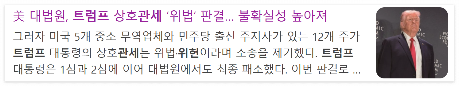 ▪ 핵심 요약: 트럼프 관세 위헌 판결 호재 vs 악재, 어디에 무게?